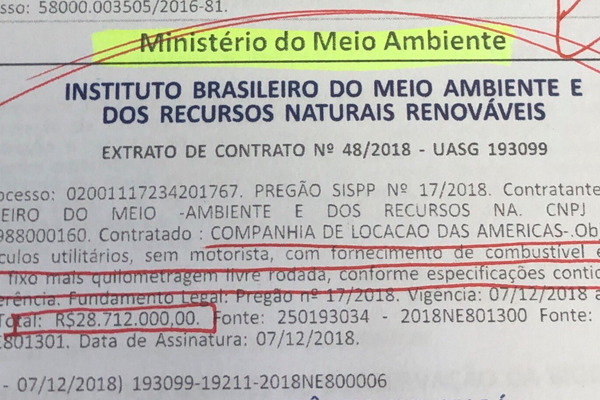 Documento que previa aluguel e manutenção de 393 camionetes adaptadas…