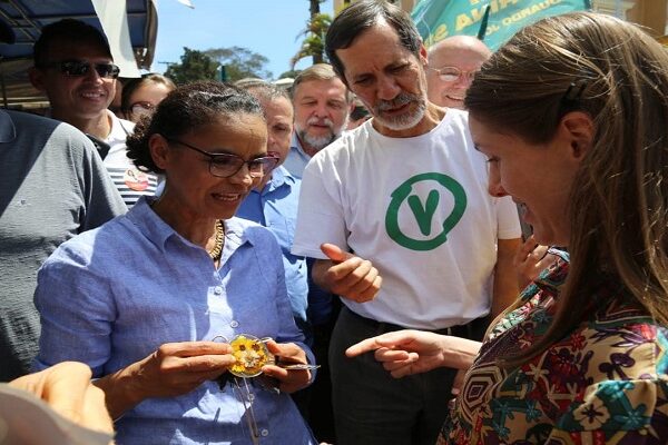 A candidata da coligação Rede-PV, Marina Silva, e seu vice,…